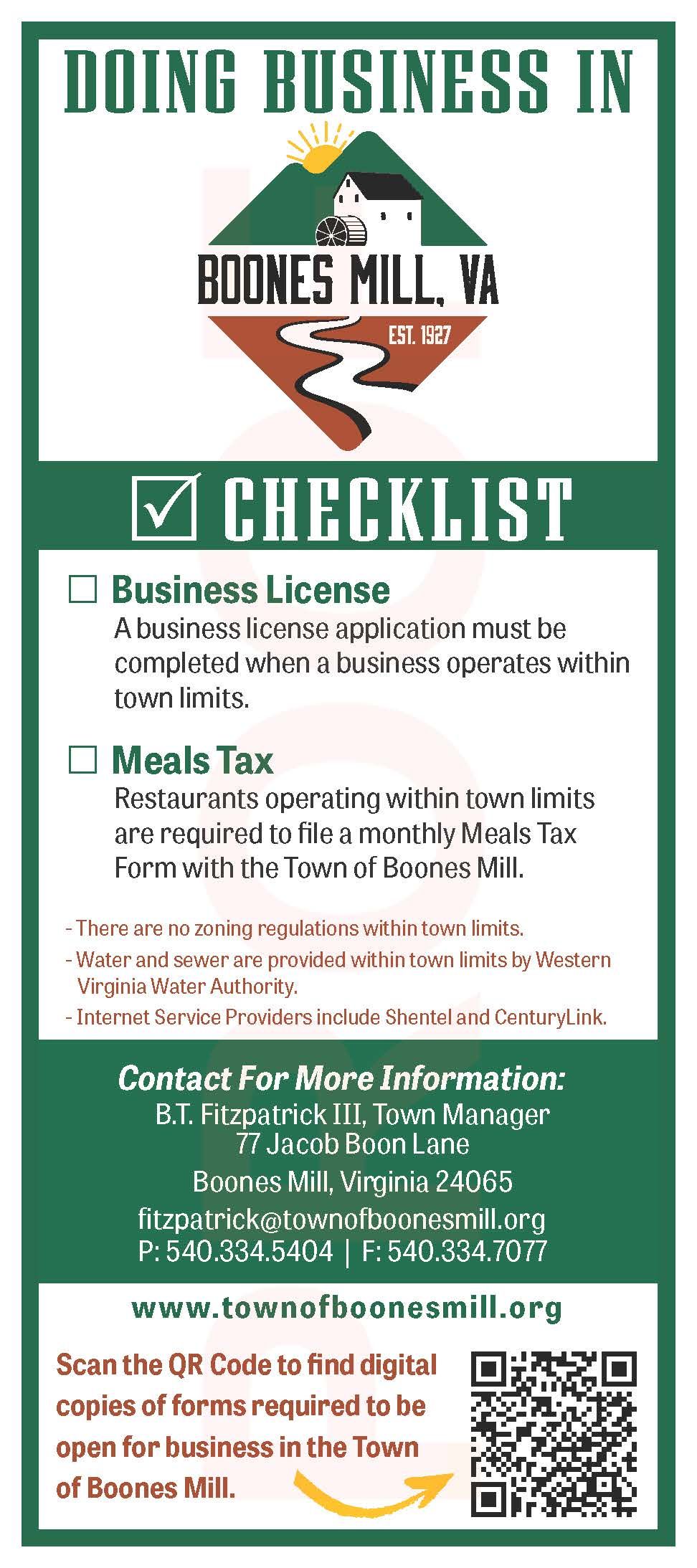The Town of Boones Mill is a GREAT place to do business! Our strengths include: